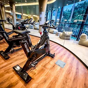 Tem centro de fitness com uma grande variedade de esportes.